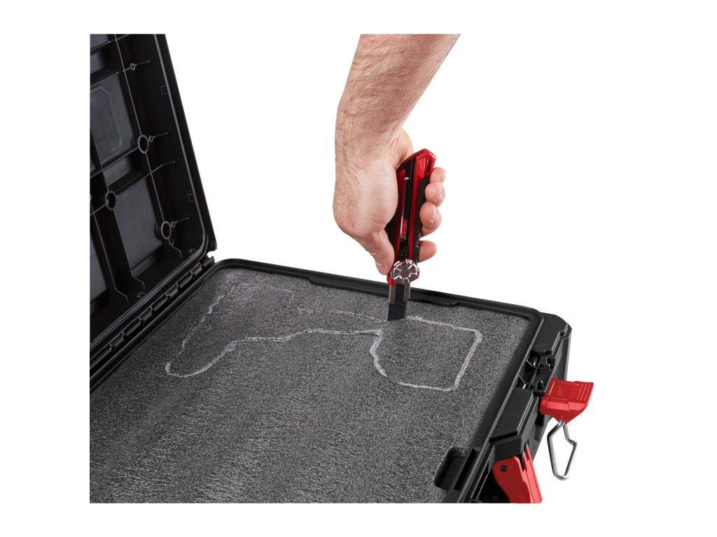 - Pěnová vložka vám umožní plně přizpůsobit vaše úložiště vyříznutím vlastních otvorů pro bezpečné uložení a ochranu vašeho nářadí.