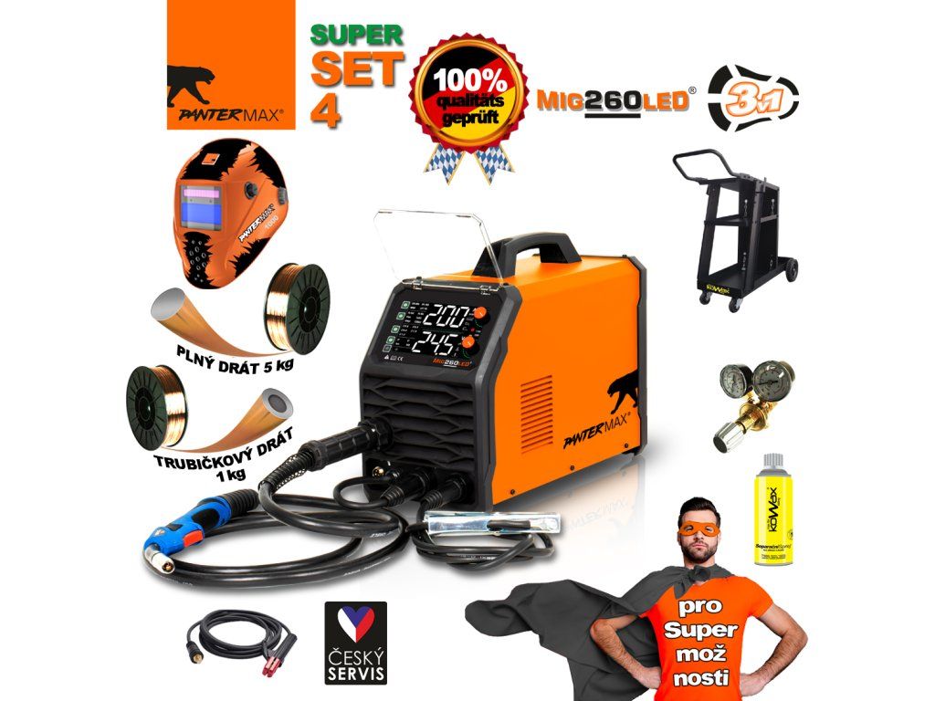 PANTERMAX® Svářecí invertor MIG260LED® SET4bL (MIG/MMA/TIG)