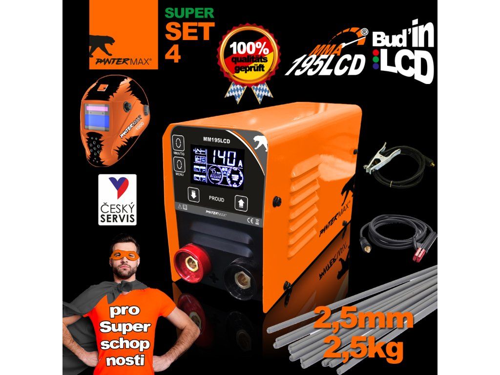 PANTERMAX® Svářecí invertor MMA195LCD® SET4 (MMA/TIG)