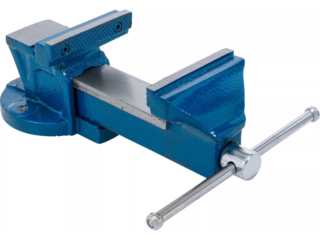 Je vyroben ze speciální litiny, což zajišťuje stabilitu a dlouhou životnost. Upínací čelisti o šířce 100 mm jsou tvrzené a zdrsněné pro bezpečné uchycení obrobků.