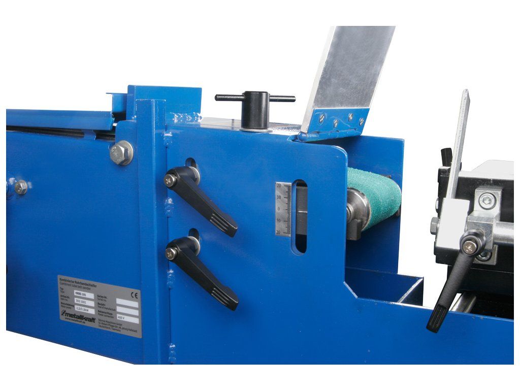 Pásová bruska k tvarovému broušení trubek a profilů, rovinnému i běžnému broušení.- Snadná obsluha díky jednoduchému nastavení upínacího mechanismu