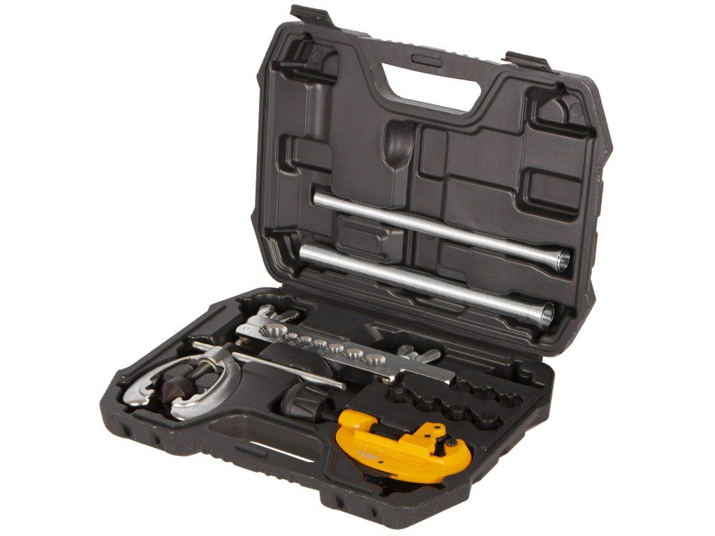 Pertlovací sada na hliníkové a měděné brzdové trubky v kompletní sadě i s řezačkou trubek a přípravky pro jejich ohýbání.