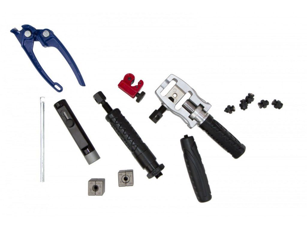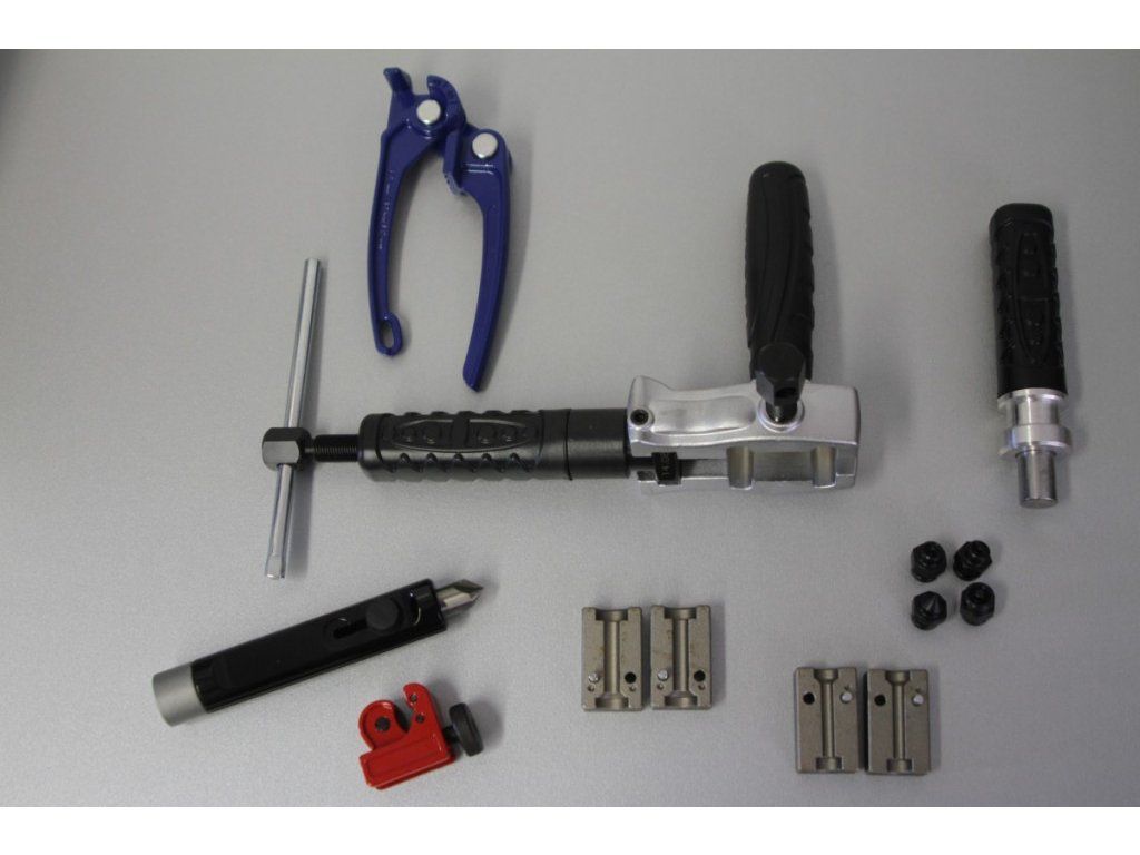 - Řezačka trubek pro rozměry 1/8" až 5/8" (3-16 mm)