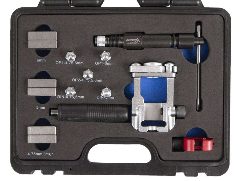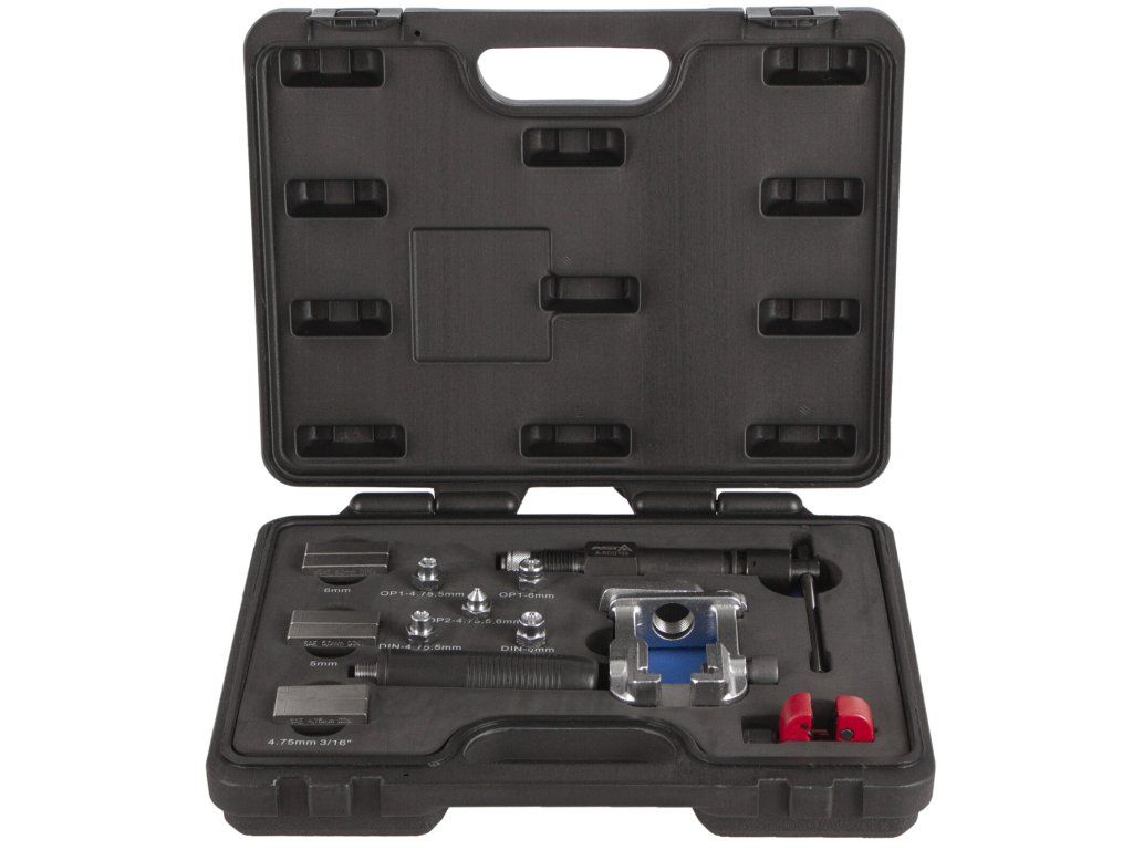 - Přípravek umožňuje vytvořit připojovací sedla na brzdovém potrubí světlosti 4.75, 5 a 6 mm.