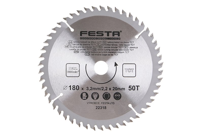 Parametry produktu Kotouč pilový FESTA SK 180/3.2/20,16mm 50T