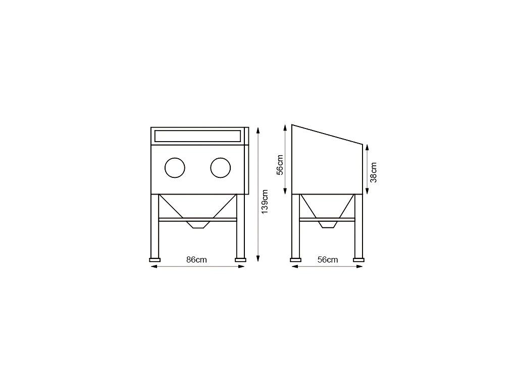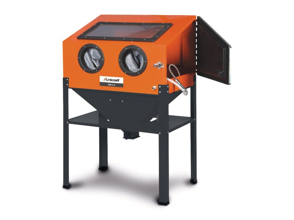 Samostatně stojící box pro pískování menších a středně velkých předmětů.