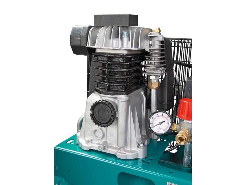 Pojízdný kompresor s osvědčeným pohonem pomocí klínového řemene a dvouválcovým, vysoce výkonnými agregátem z ekonomické řady pro montáž, domácí dílnu a hobby.- Dvouválcový vysoce výkonný agregát ze šedé litiny zaručuje dlouhou životnost