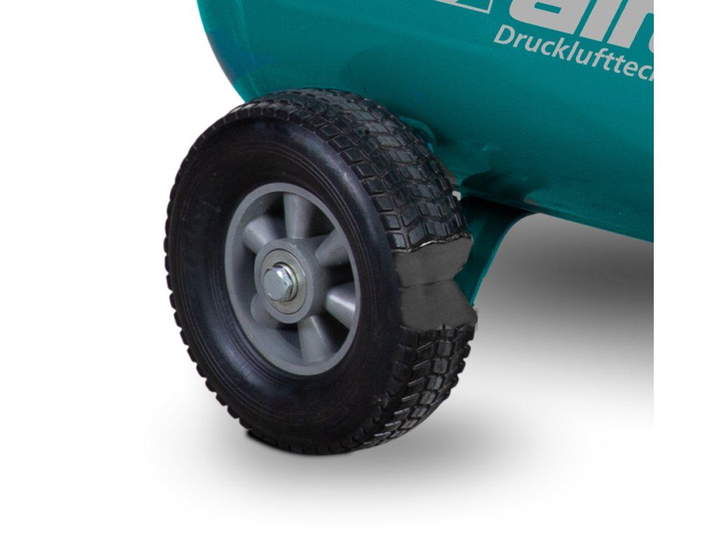 - Stabilní řiditelný podvozek s parkovací brzdou ve spojení s velkými koly z PU pěny zabraňující defektu umožňují pohodlnou přepravu bez nutnosti kompresor nadzvedávat