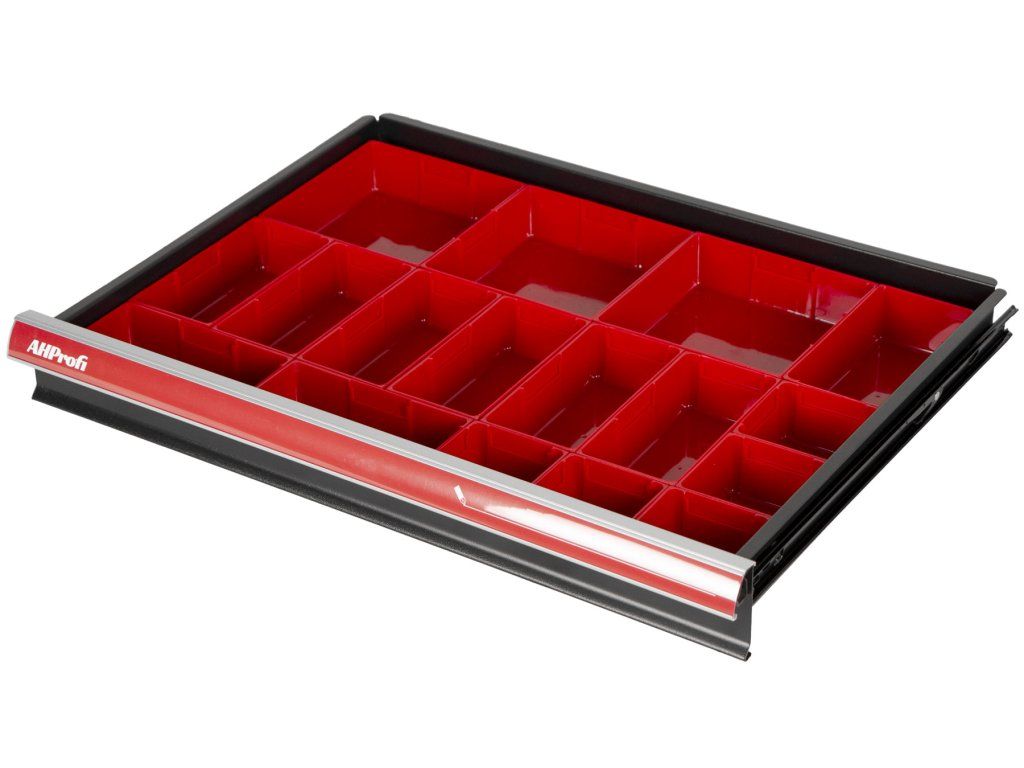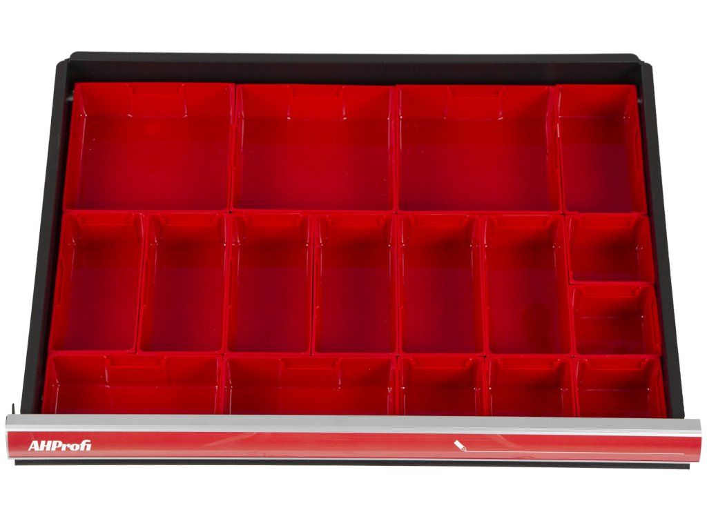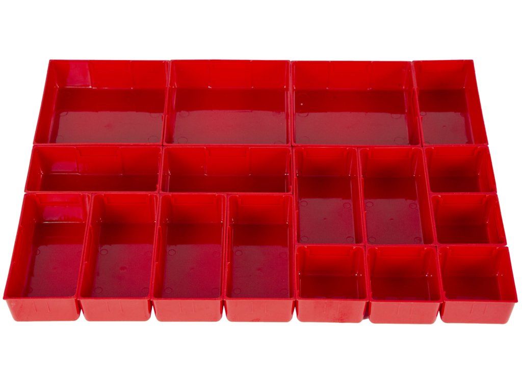 Sada 17 ks plastových boxů do zásuvek vozíků nebo dílenských stolů.
