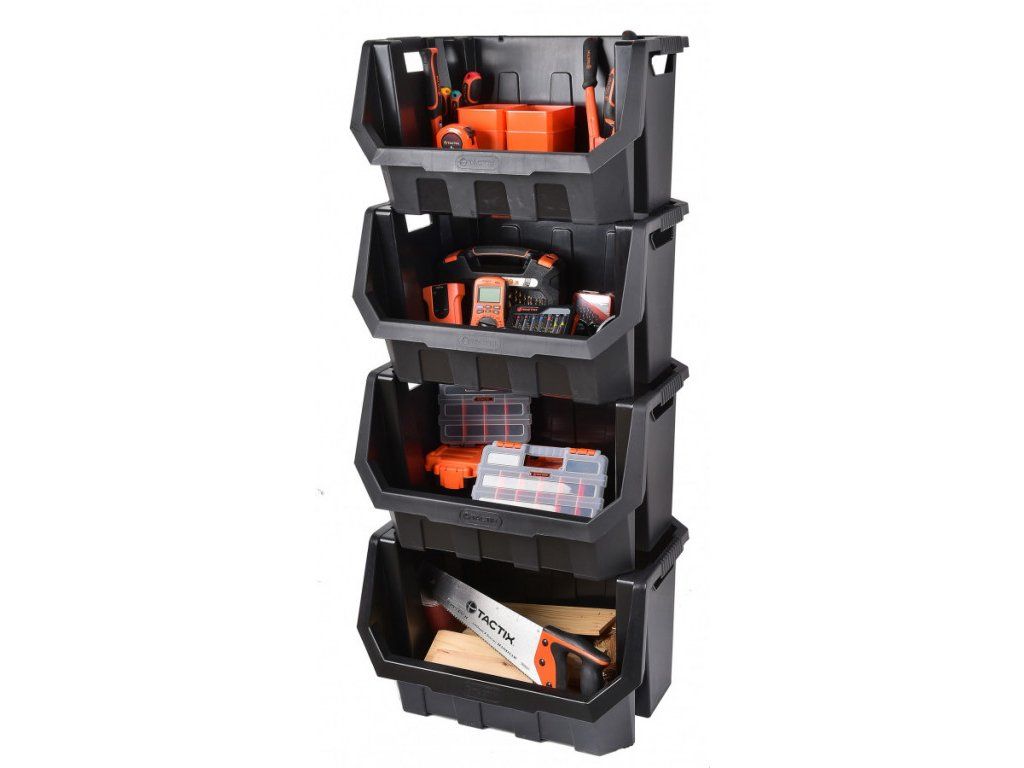 Box lze pověsit na zeď, nebo při zakoupení dalších totožných organizérů, je lze skládat na sebe. Ideální pro použití v garáži, suterénu, technické místnosti či herně.