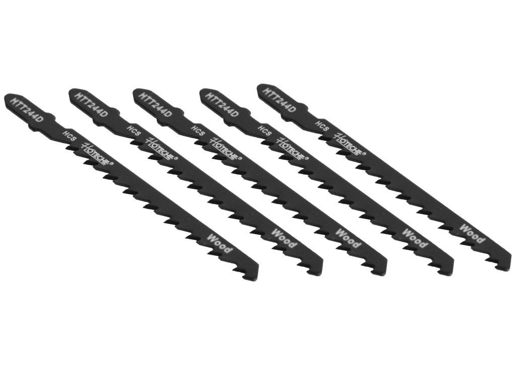 Sada obsahuje 5 ks plátků do přímočaré pily (šukalky) určených k řezání dřeva.