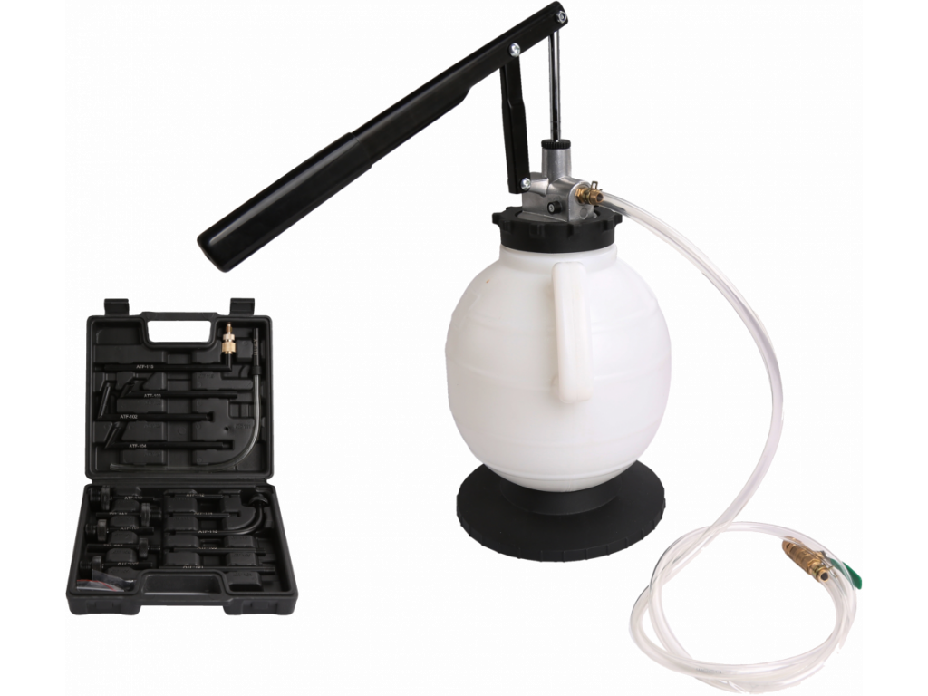 Pneumatický ruční plnicí systém tzv. pneumatická ruční plnička oleje do převodovek s 15 různými adaptéry a ručním pákovým čerpadlem.