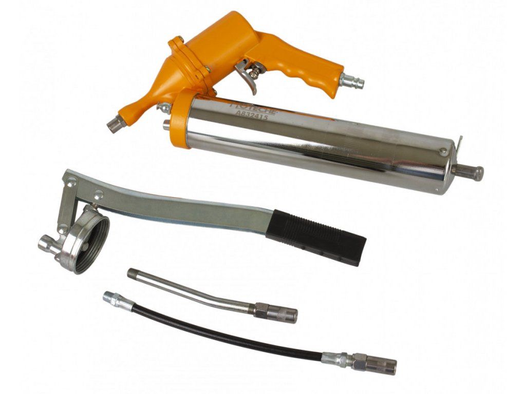 Tato sada obsahuje i ruční páku - tak lze přístroj používat i jako ruční pákový mazací lis.