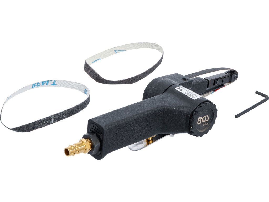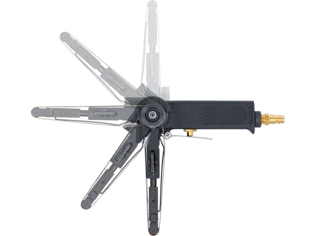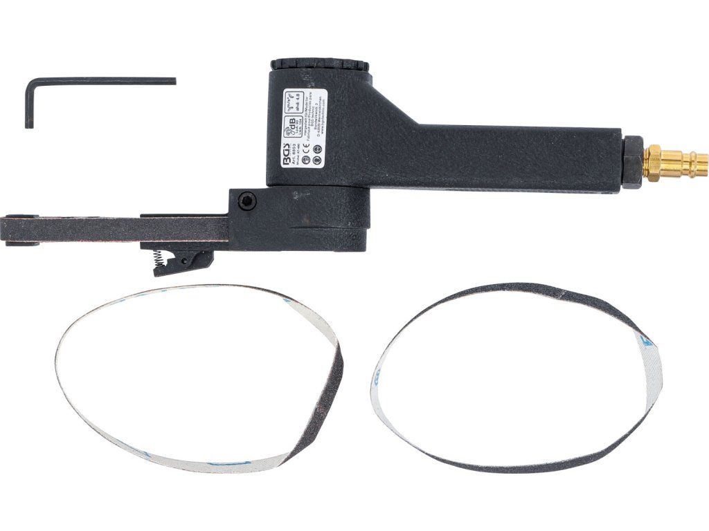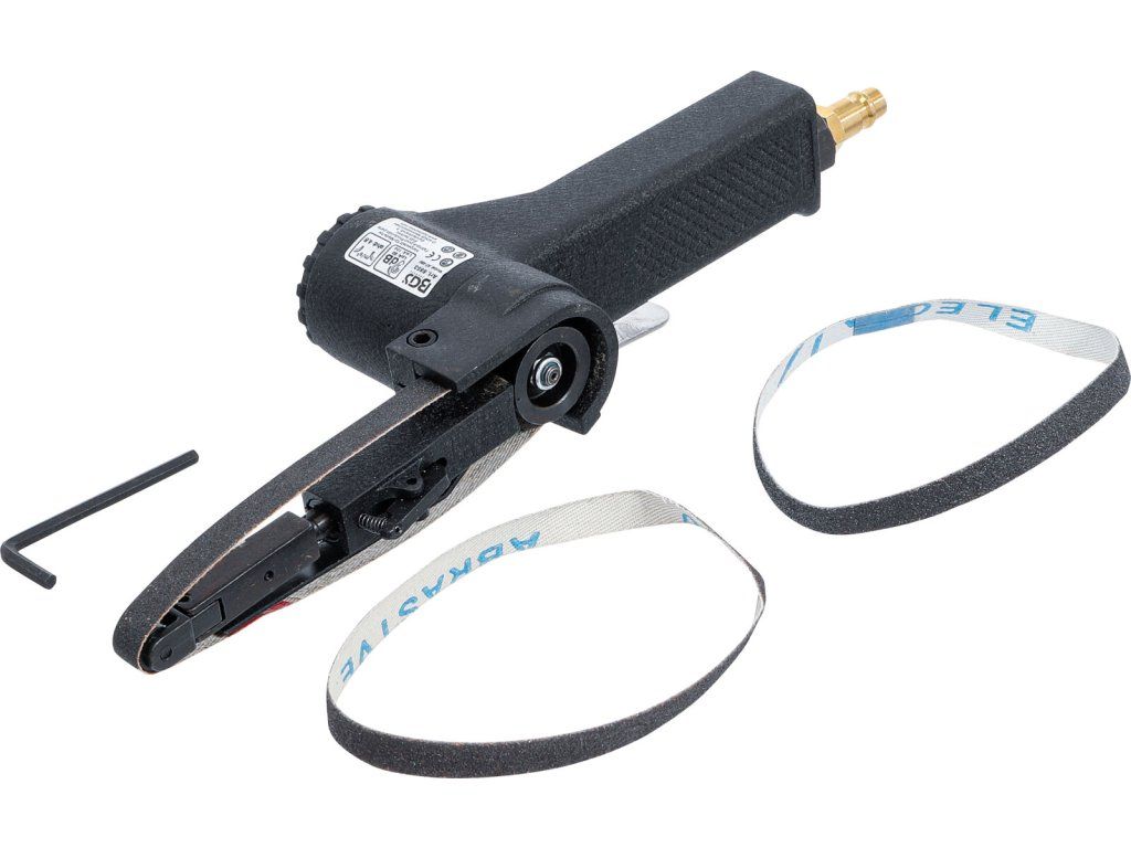 Pneumatická pásová bruska pro broušení malých ploch, čištění brzdových třmenů při výměně brzdových destiček apod.