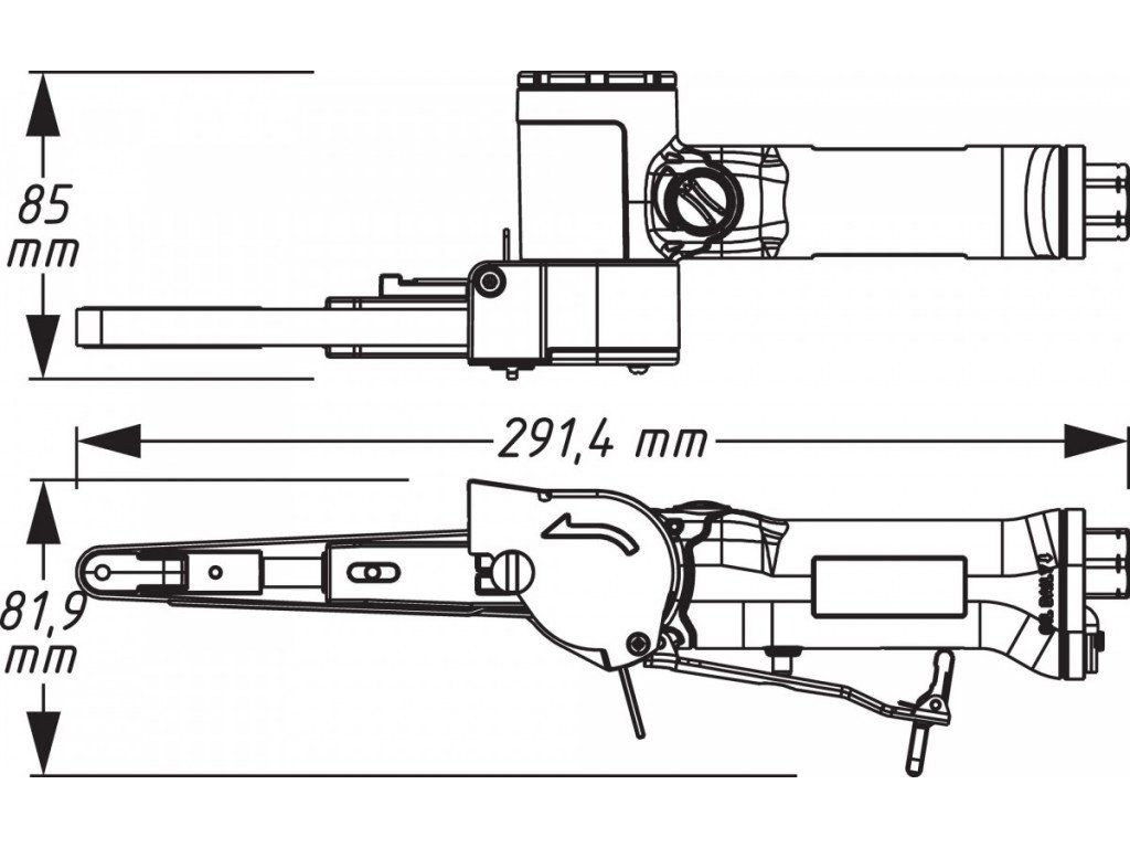 Výkonná pneumatická bruska s 10mm páskem pro přesné broušení detailů a hůře dostupných míst.