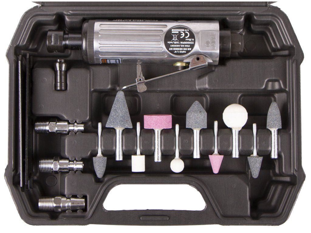 Pneumatická přímá bruska, 1/4", sada 16 ks - HTA830301