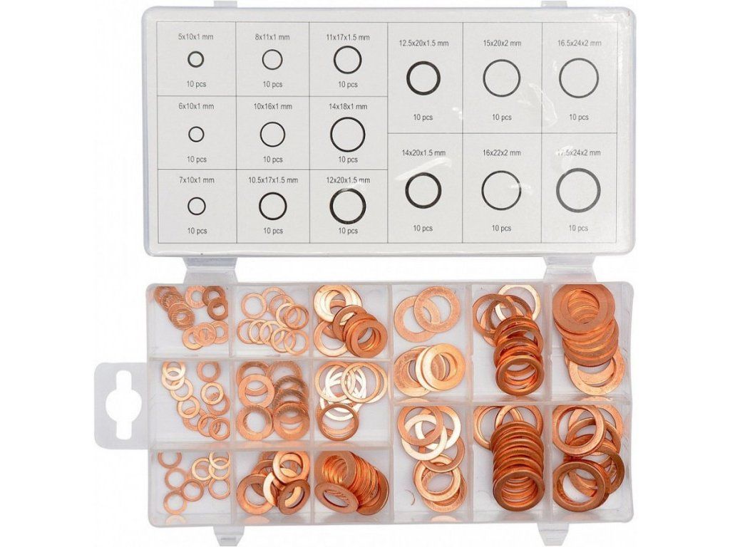 Podložky těsnící měděné sada 150ks - YT-06871
