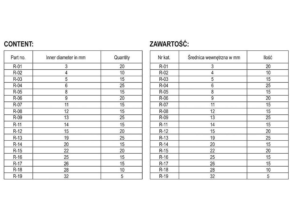 Pojistné kroužky sada 300ks, R1-R19, pr. 3 -32mm