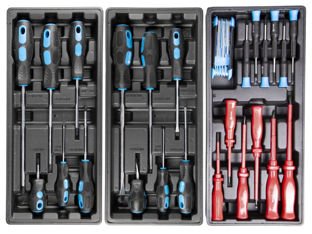 | 6 ks | Šroubováky ploché: 3 x 75; 4 x 100; 5 x 100; 6 x 38; 6 x 150 a 8 x 200 mm. |