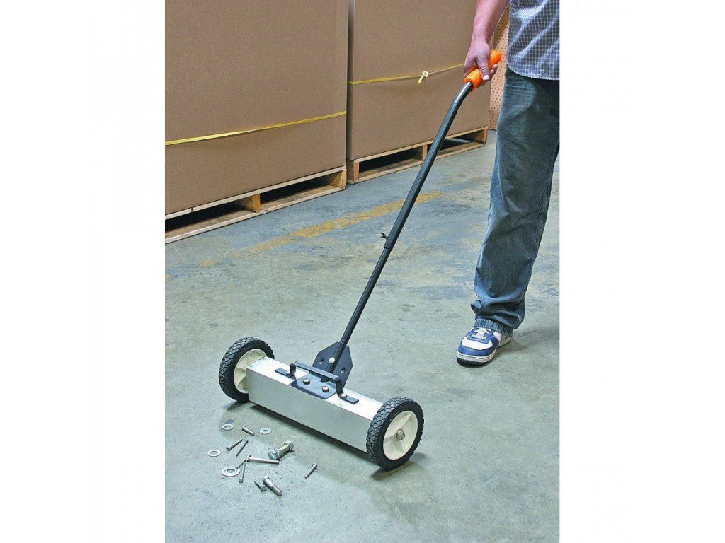 Magnetický smeták určený pro úklid v průmyslových provozech nebo skladech, kde se pracuje s drobným magnetickým materiálem.