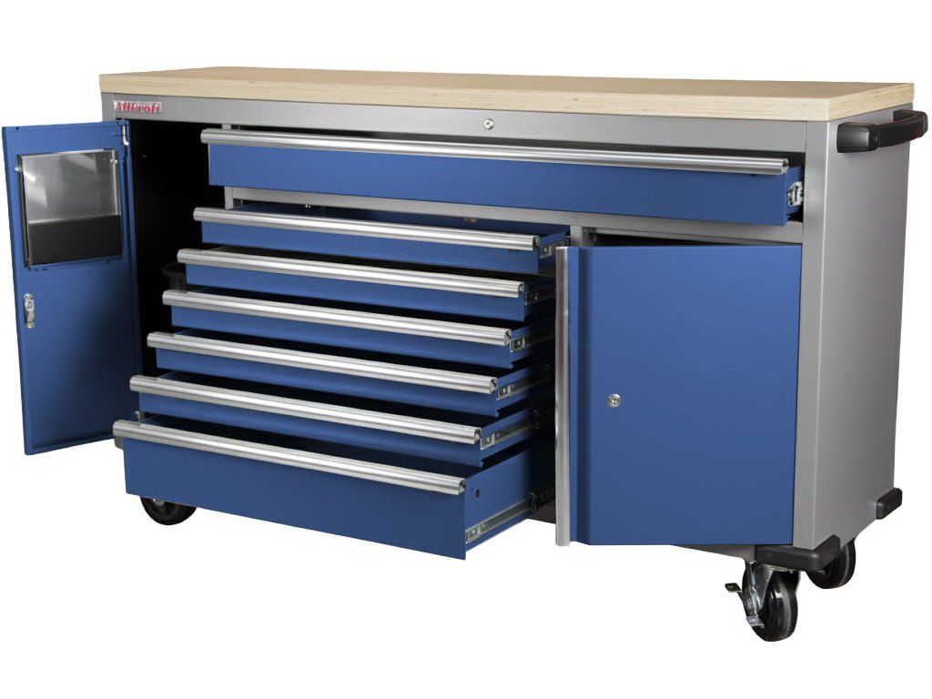 Pojízdný pracovní stůl, 7 zásuvek, modrý - MTGC1372