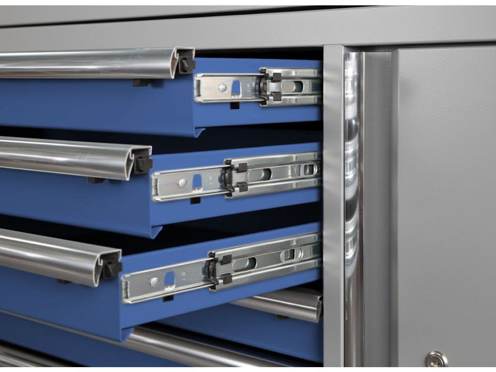 Zásuvky jsou osazeny kvalitními pojezdy, které ve spojení s kuličkovými ložisky zajišťují snadné vysouvání.