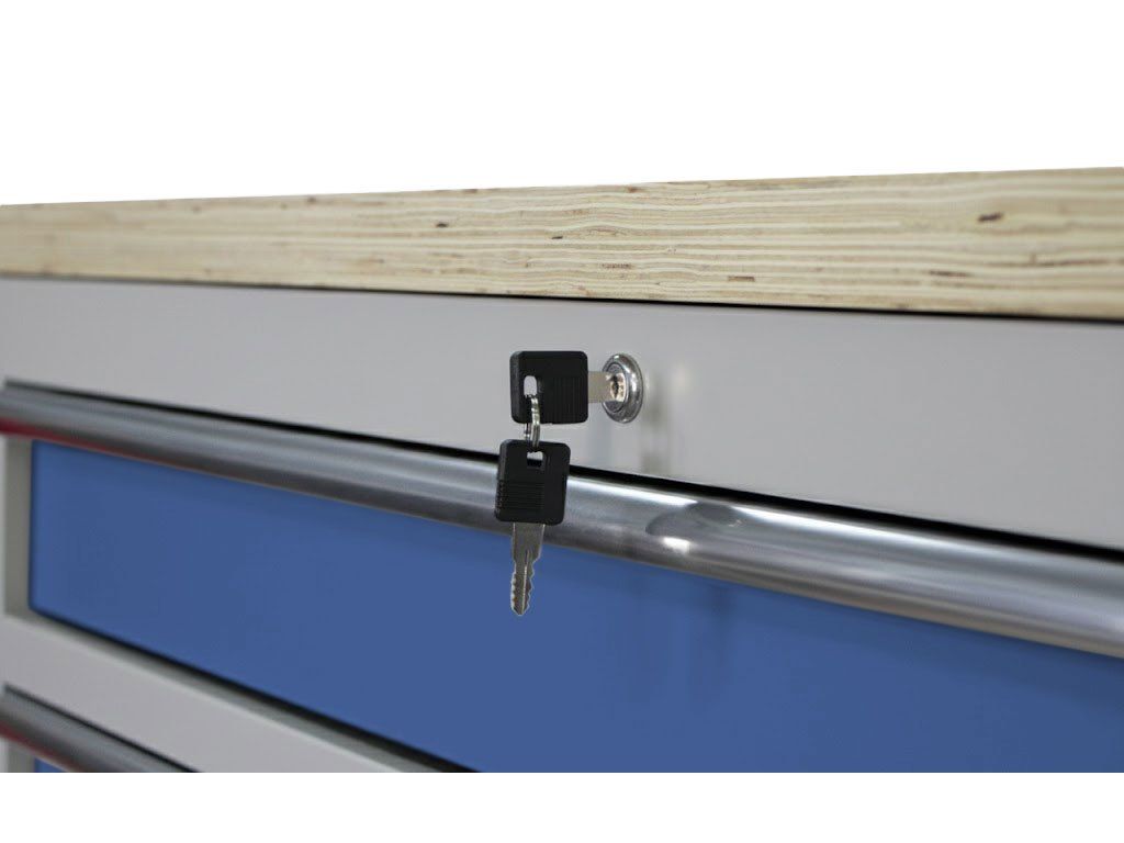 Pro zamezení přístupu nepovolaným osobám k nářadí, využijete zámek na přední straně skříňky a zajistíte všech 7 zásuvek naráz.