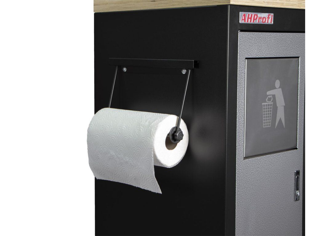 Úložný prostor mimo zásuvek je doplněn o skříňku s policí a integrovaný prostor s odpadkovým košem.