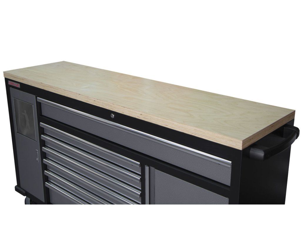 Pracovní plocha je osazena bytelnou dřevěnou deskou z 10 vrstvé překližky, která je ošetřena 2 vrstvami laku.