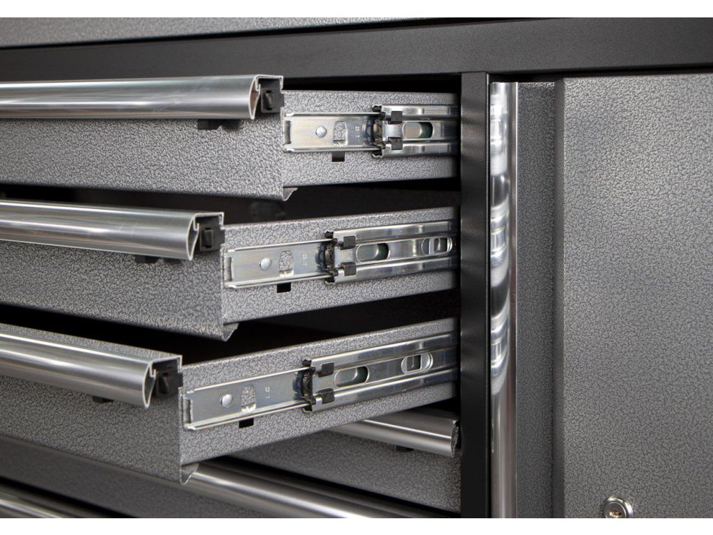 Zásuvky jsou osazeny kvalitními pojezdy, které ve spojení s kuličkovými ložisky zajišťují snadné vysouvání.
