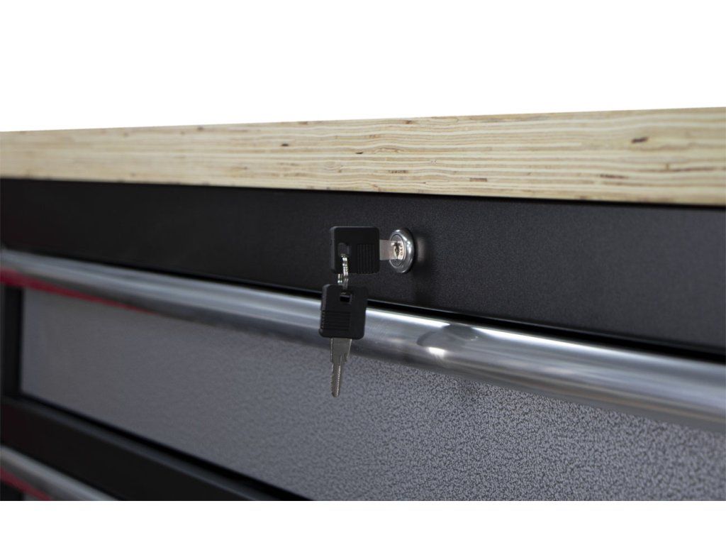 Pro zamezení přístupu nepovolaným osobám k nářadí, využijete zámek na přední straně skříňky a zajistíte všech 7 zásuvek naráz.