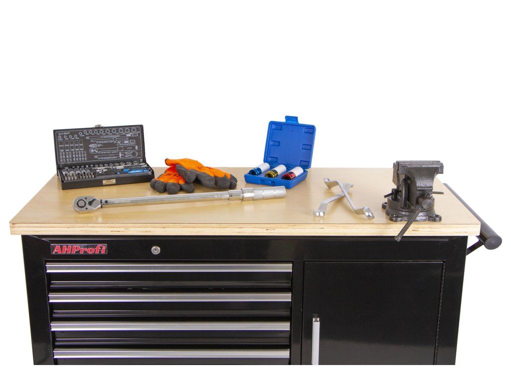 Na pracovní plochu se také hodí např. gola sada, momentový klíč nebo svěrák.