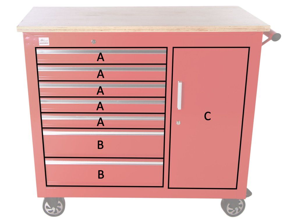 Do zásuvek je možnost dokoupit výplně s nářadím, nebo uložit vaše elektrické vybavení jako je např. úhlová bruska nebo vrtačka.