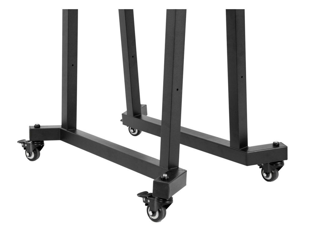 Vybaven 4 kolečky s brzdou pro zajištění stability při práci a snadnou manipulaci při přepravě či uskladnění.