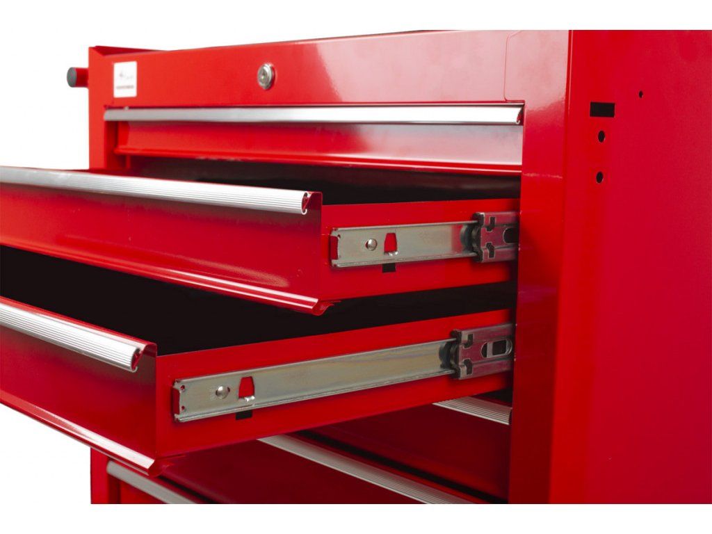 7 uzamykatelných zásuvek s kuličkovými ložisky ve výsuvech pomáhá snadnému výsuvu i při maximálním zatížení zásuvek. Výsuv je osazen dorazem. Vnitřní rozměr zásuvek je 570 x 410 mm.