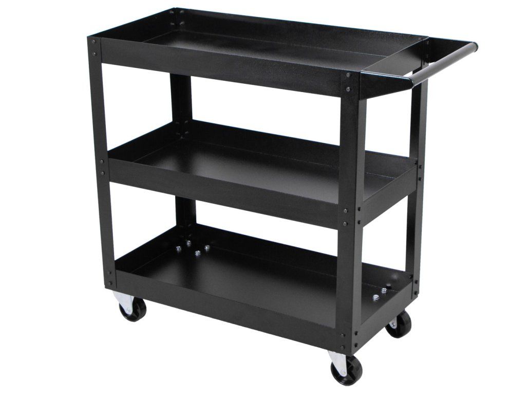 Praktický dílenský vozík s kovovou konstrukcí nabízí dostatek prostoru pro uložení nářadí.