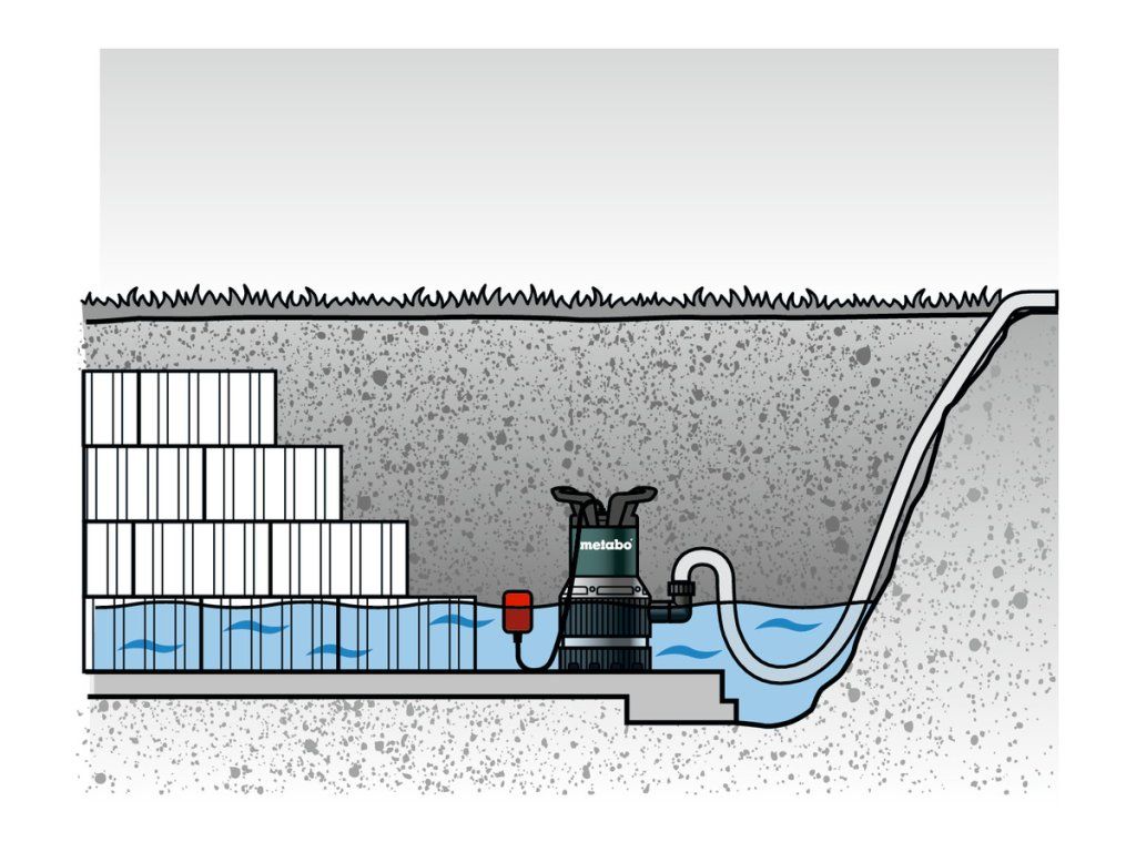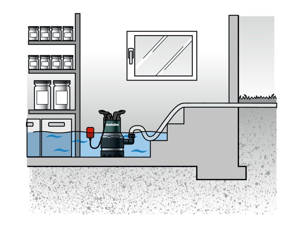 - Možné použití jako ponorné čerpadlo na znečištěnou vodu vhodné pro hrubé nečistoty do velikosti zrna 20 mm