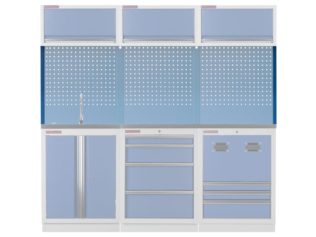 Postranní lišta k PROFI děrované závěsné desce. Postranní lišty jsou určené pro rohové spojení děrovaných desek a k zavěšení rohové závěsné skříňky z rohové sestavy PROFI dílenského nábytku. Pro sestavení rohu je nutné použít 2 ks těchto lišt.