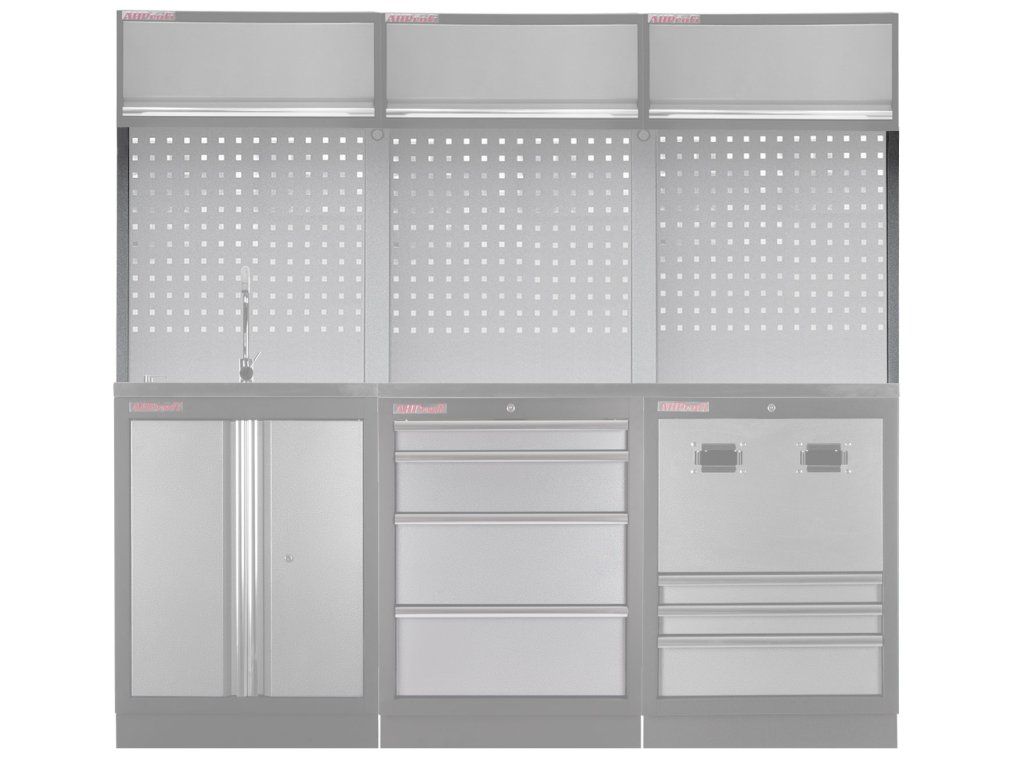 Postranní lišta k PROFI děrované závěsné desce. Jsou určené pro rohové spojení děrovaných desek a k zavěšení rohové závěsné skříňky z rohové sestavy PROFI dílenského nábytku. Pro sestavení rohu je nutné použít 2 ks těchto lišt.