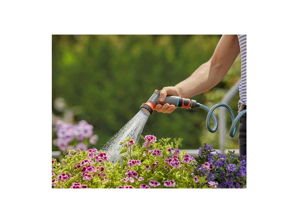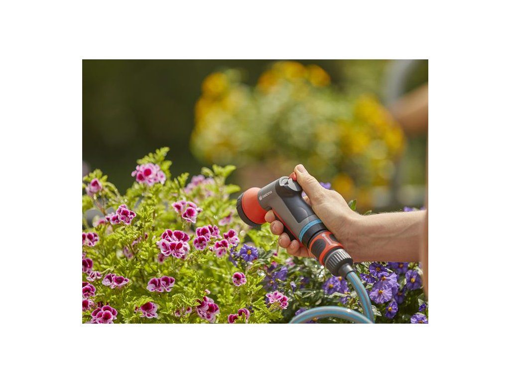 Kompaktní postřikovací pistole pro šetrné zavlažování rostlin na balkonech, menších zahradách nebo terasách. Snížený průtok. Odolná vůči mrazu.