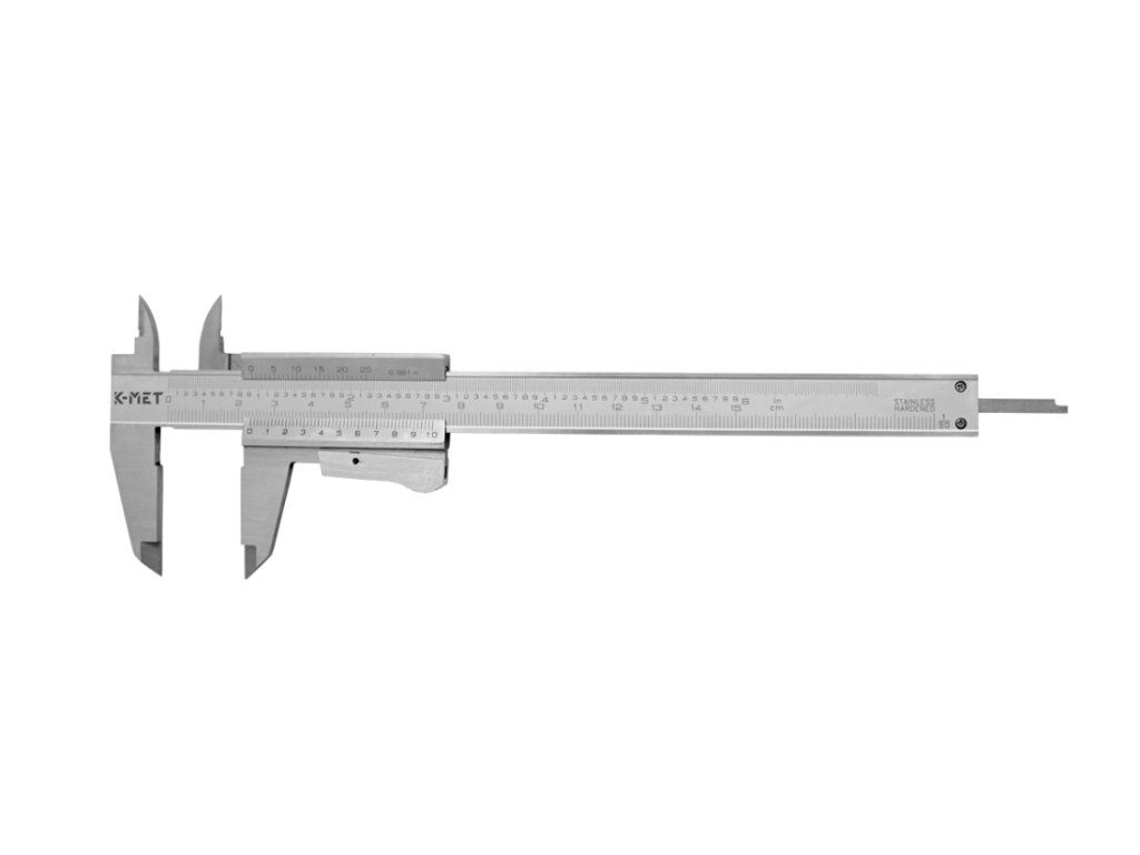 Posuvné měřítko K-MET 150 mm, 0,02 mm, aretace tlačítkem, mm+inch, monoblok, ČSN 25 1238, DIN 862 | 6000-3