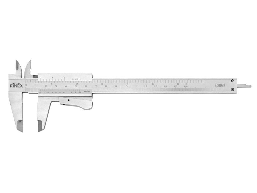 Posuvné měřítko K-MET 150 mm, 0,05 mm, aretace tlačítkem, mm+inch, monoblok, ČSN 25 1238, DIN 862 | 6000-4