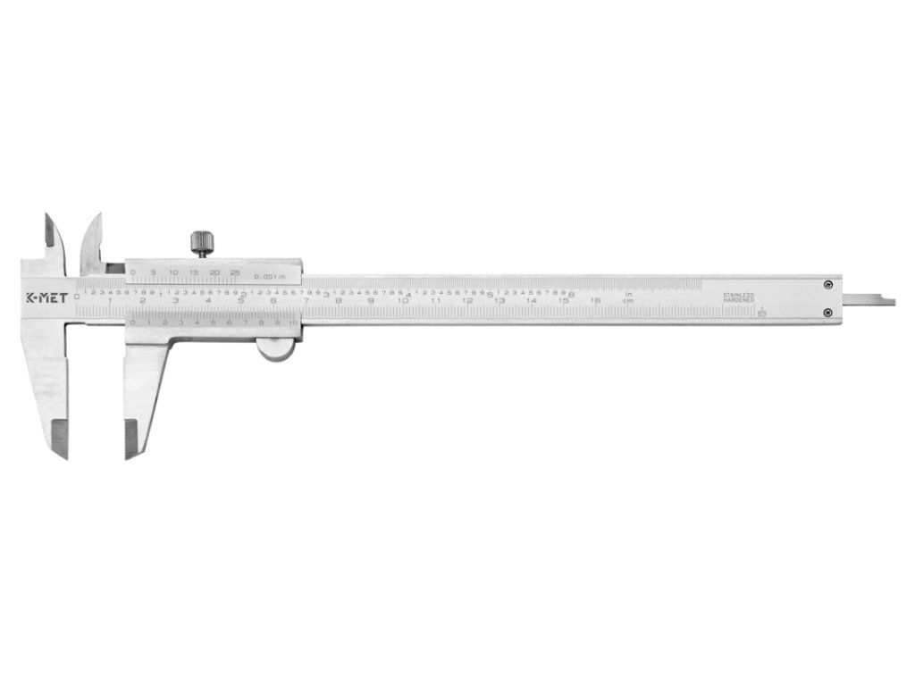 Posuvné měřítko K-MET 160 mm, 0,02 mm, aretace šroubkem, mm+inch, monoblok, ČSN 25 1238, DIN 862 | 6000-25