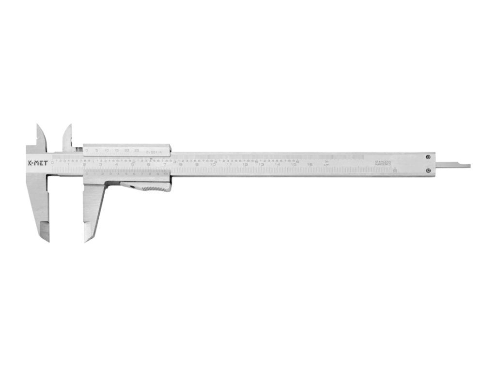 Posuvné měřítko K-MET 160 mm, 0,02 mm, aretace tlačítkem, mm+inch, monoblok, ČSN 25 1238, DIN 862 | 6000-20