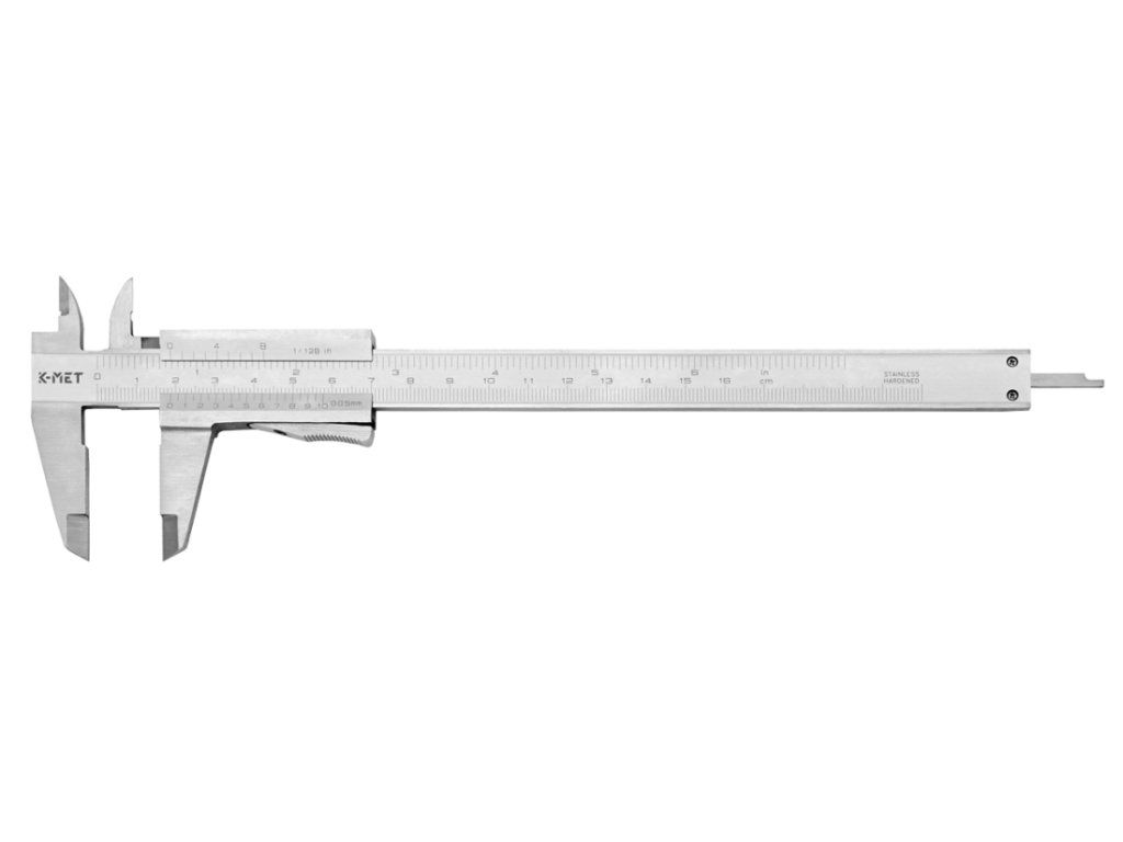 Posuvné měřítko K-MET 160 mm, 0,05 mm, aretace tlačítkem, mm+inch, monoblok, ČSN 25 1238, DIN 862 | 6000-21