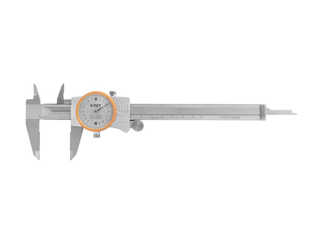 Posuvné měřítko s číselníkovým úchylkoměrem K-MET 150 mm, 0,02 mm, nárazuvzdorný, ČSN 25 1235, DIN 862 | 6013-02-150