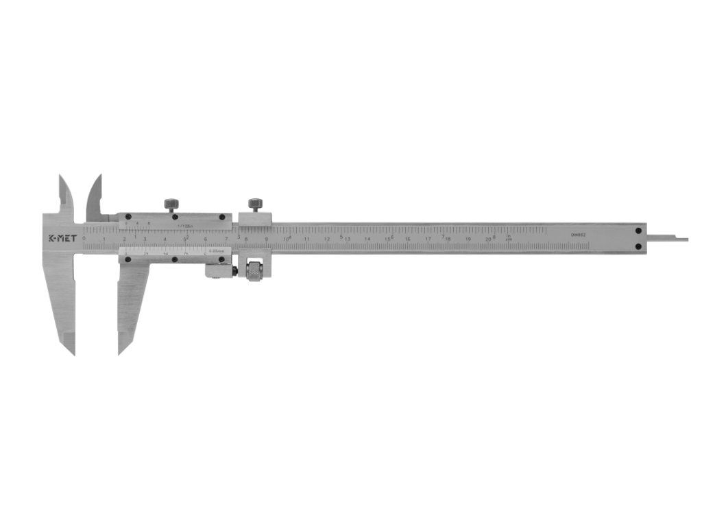 Posuvné měřítko s vnitřním měřením a hloubkoměrem K-MET 200 mm, 0,05 + 1/128 inch, jemné stavění, DIN 862 | 6002-90-1