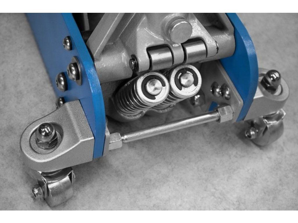 Hybridní konstrukce (→ pevný hliníkový rám, ocelová zvedací jednotka), zdvojený tlačný píst (→ zrychlený zdvih).