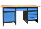 Ponk do dílny s dílenskou skříňkou na nářadí, 5 zásuvek. Pracovní deska z kaučukového dřeva, konstrukce ze za studena válcované oceli. Rozměry stolu 1562 x 762 x 920 mm, nosnost...