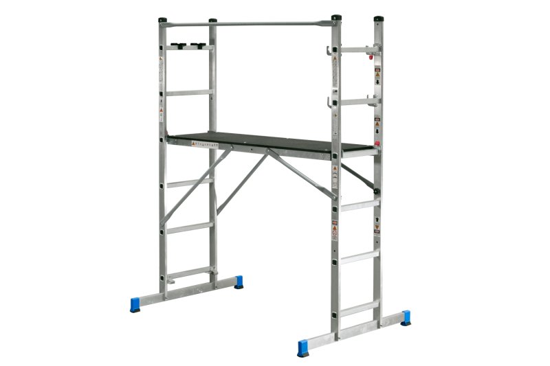 stabilní a lehkká hliníková multifunkční pracovní plošina - lešení široká variabilita možností pouřití - klasické lešení, žebřík, štafle maximální zatížení max 150 kg hmotnost setastavy 14 kg PŘI PRÁCI NA PLOŠINĚ - VŽDY DBEJTE ZVÝŠENÉ OPATRNOSTI! PLOŠINA MUSÍ BYT UMÍSTĚNA NA PEVNÉM POVRCHU, ABY BYLA ZAJIŠTĚNA JEJÍ STABILITA !
